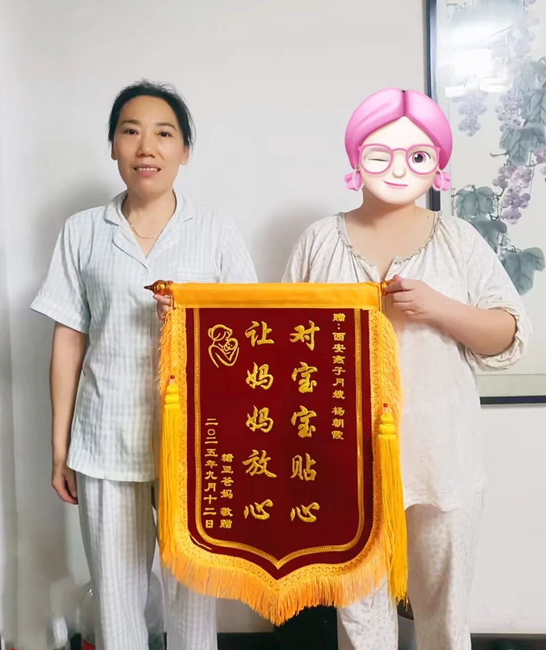 尊贵客户及家人为燕子月嫂杨朝霞定制锦旗:“对宝宝贴心,让妈妈放心”,并附一封感谢信,表示对我们服务的肯定!燕子月嫂全体员工感恩您一直以来的信任与支持,我们将秉承客户至上、以人为本的服务宗旨,把优质的母婴护理服务送入千家万户!