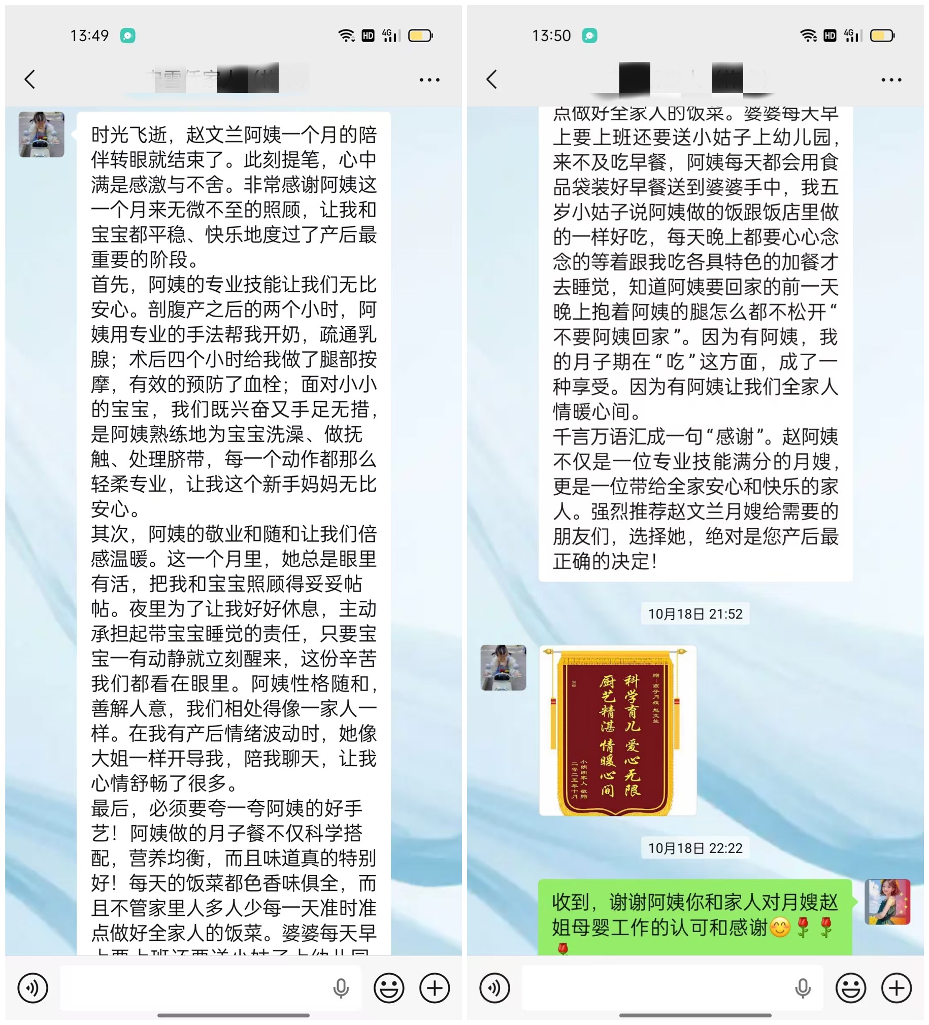时光飞逝,赵文兰阿姨一个月的陪伴转眼就结束了。此刻提笔,心中满是感激与不舍。非常感谢阿姨这一个月来无微不至的照顾,让我和宝宝都平稳、快乐地度过了产后最重要的阶段。