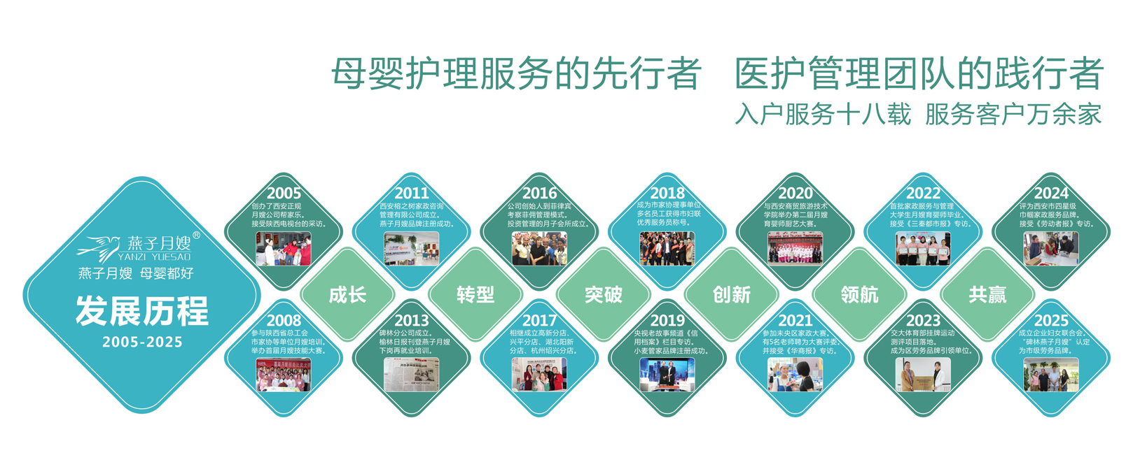 二十年风雨历程,“以人为本、专业热忱、服务至上”的宗旨早已融入我们的血脉。这份坚守,让我们赢得了“陕西省家庭服务业协会常务理事单位”的认可,更让我们的创始人与品牌,先后荣获“中国家庭服务业先进工作者”及“诚信企业”的殊荣。信任,是燕子月嫂最珍视的资产。正因如此,我们的金牌月嫂团队得以服务省部级领导家庭及众多公众人物,服务足迹从北京、上海、深圳延伸至新西兰、新加坡、柬埔寨等海外地区,让源自中国的专业护理标准,赢得世界的信赖。
