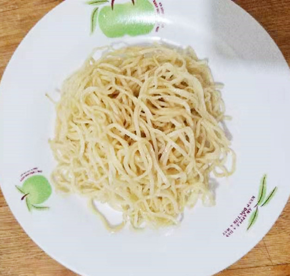 2、把面买回来的生面上笼蒸熟,约十五分钟(也可以直接买熟面),然后过凉水,拌熟油备用。