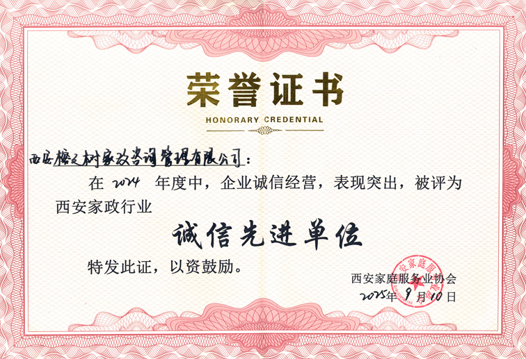 西安燕子月嫂荣获2024西安家庭服务业协会诚信先进单位。